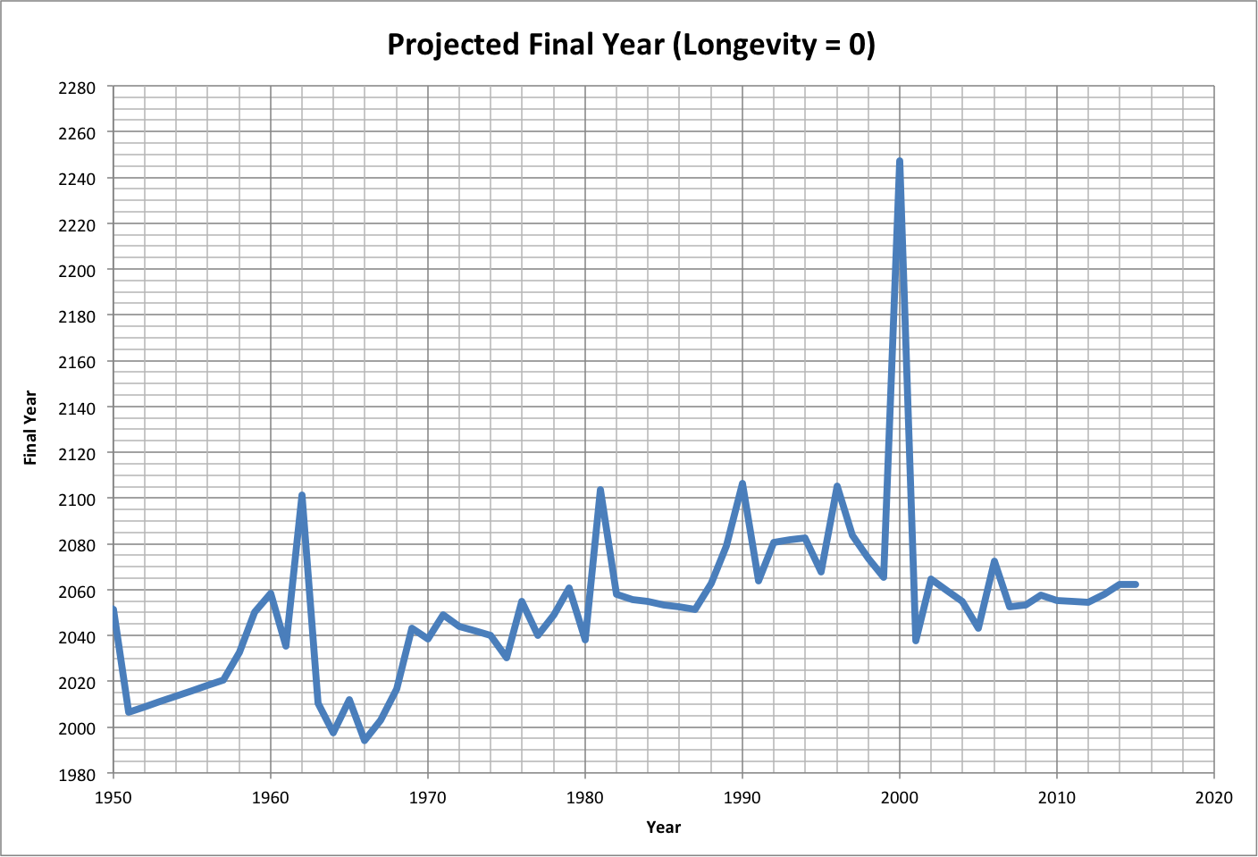 The following graph shows the projected final year if the total resources are twice what is expected. Roll over the image to see the associated growth rates. |