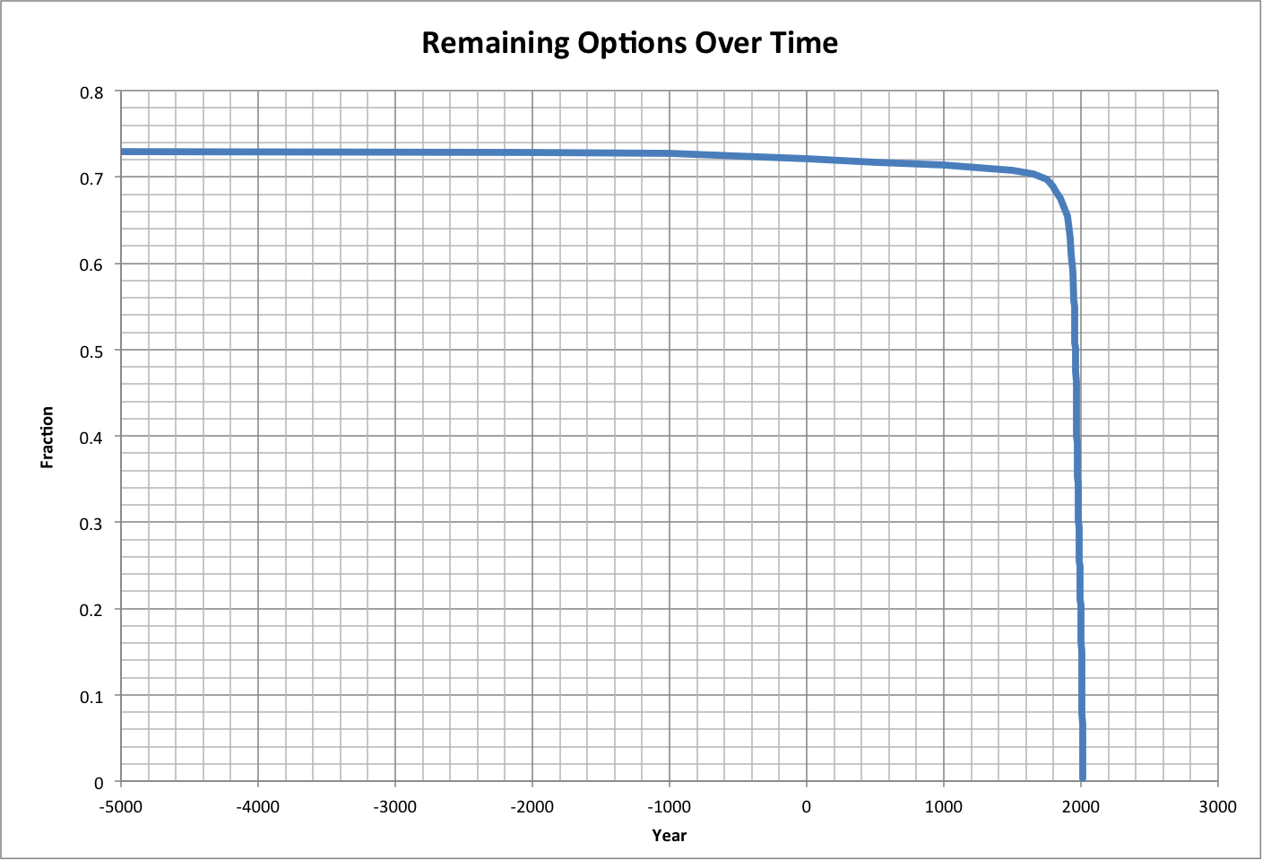 The fraction of total options remaining (OptionFraction) varies linearly with the fraction of total resources needed for consumption, producers, and providers (C):