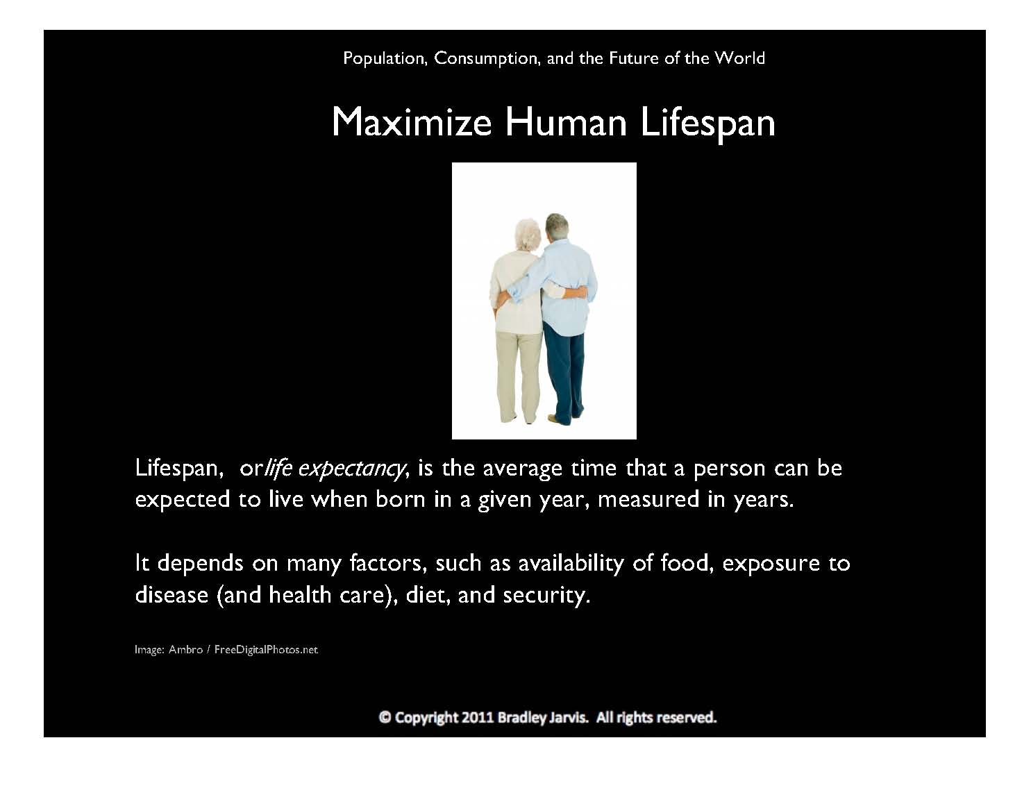 You'll recall that one of my values is quality of life. I doubt you would get much argument that living longer is something most people want to do. For much of human history, disease and availability of food were the main limitations of lifespan. Scientific knowledge and technology have gone a long way toward alleviating these.