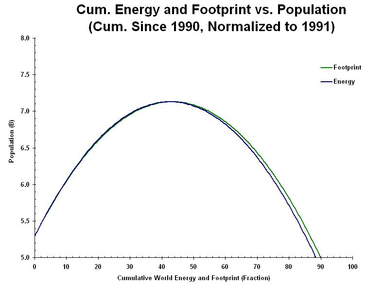 Consumption vs. Population There is a disturbing relationship the amount of energy produced by the world and the world's population. This relationship is also found for the cumulative ecological footprint: