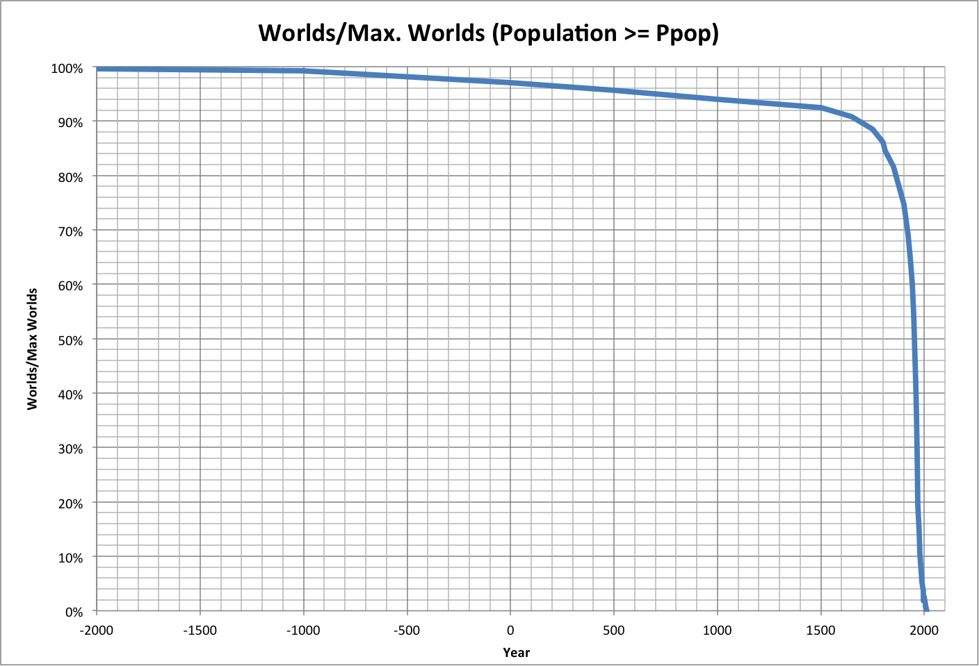 Unique to our historic trajectory is the decrease in available worlds over time. The following graph shows this, where the worlds are limited to those with: