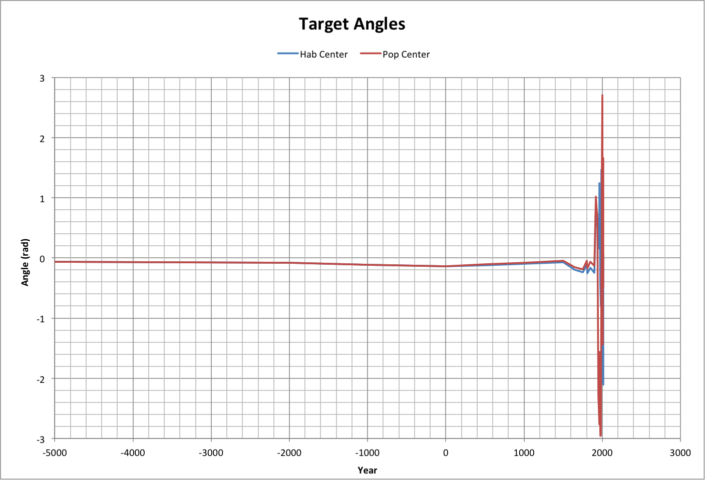 We are correctly aiming at a center of worlds if the target angle is 0. Roll over the graph to see a close-up. |